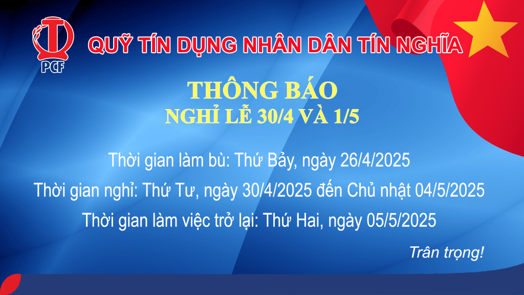 THÔNG BÁO NGHỈ LỄ 30/4 VÀ 1/5