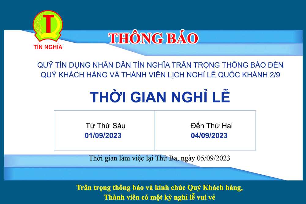 THÔNG BÁO NGHỈ LỄ QUỐC KHÁNH 2/9