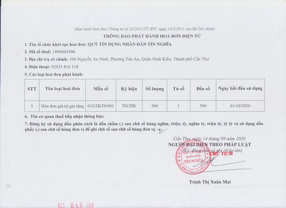 THÔNG BÁO PHÁT HÀNH HÓA ĐƠN ĐIỆN TỬ